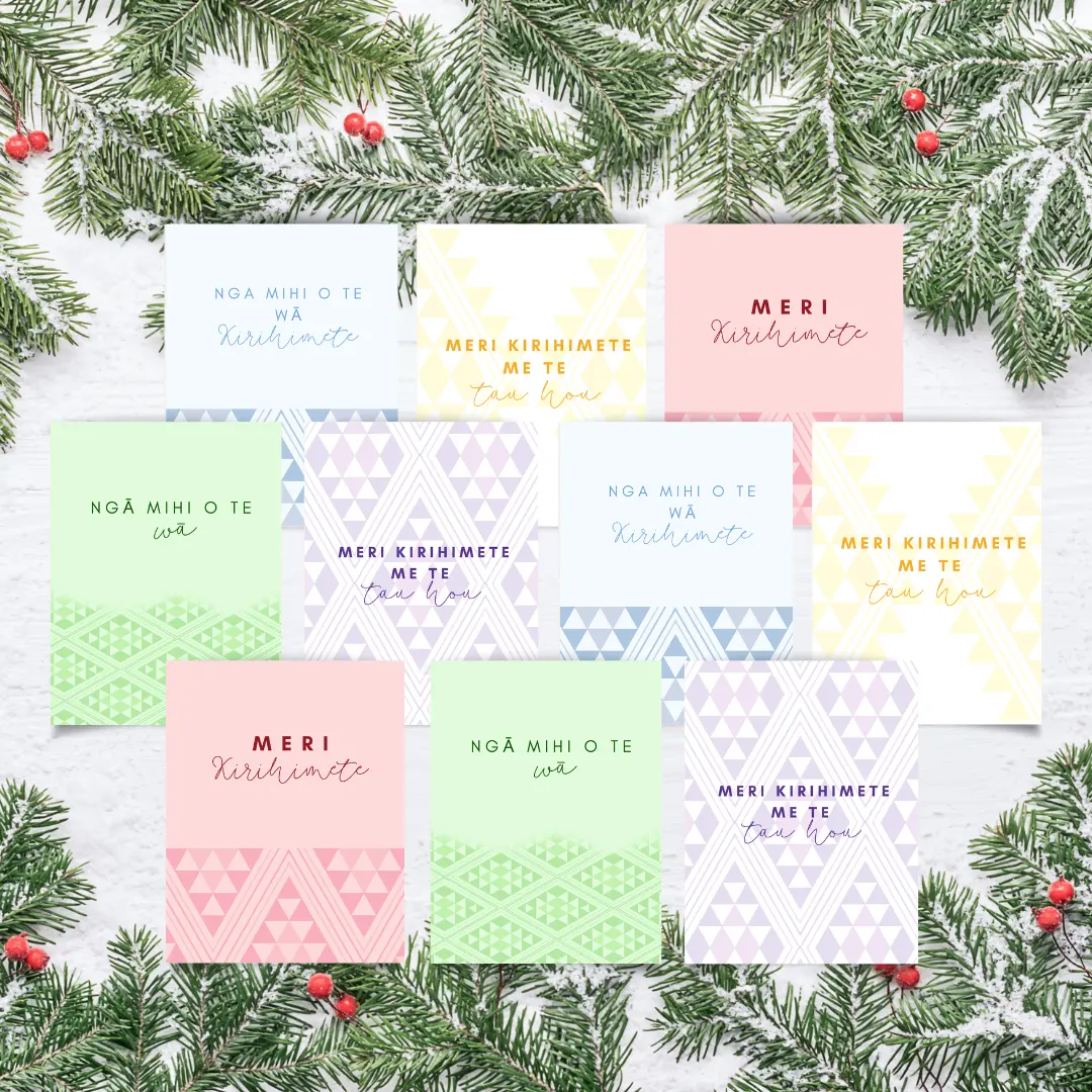 Bring the warmth of Kirihimete and the beauty of Māori culture into the hands of your whānau, friends, and colleagues with our Contemporary Christmas Cards. (A mix of Kōwhaiwhai and Christmas Ornaments)