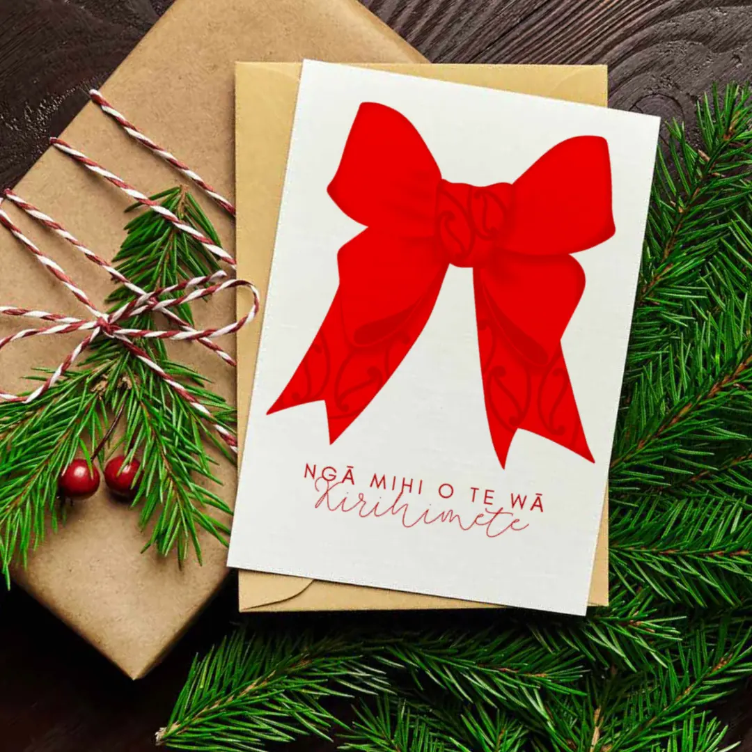 Kōwhaiwhai, with its flowing curves and symbolic patterns, representing growth, whakapapa, unity, and the movement of life. Paired with contemporary Christmas ornament designs, these cards become a modern yet deeply Māori way to celebrate the festive season. They offer a simple, meaningful, and beautiful way to share culture at Kirihimete, carrying your messages in patterns that connect us to who we are and where we come from.